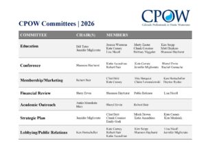 CPOW has a number of committees and welcomes member involvment on all of them.